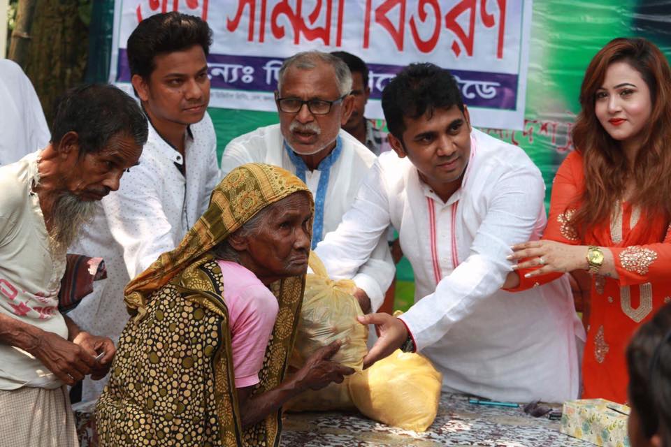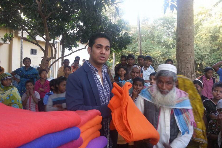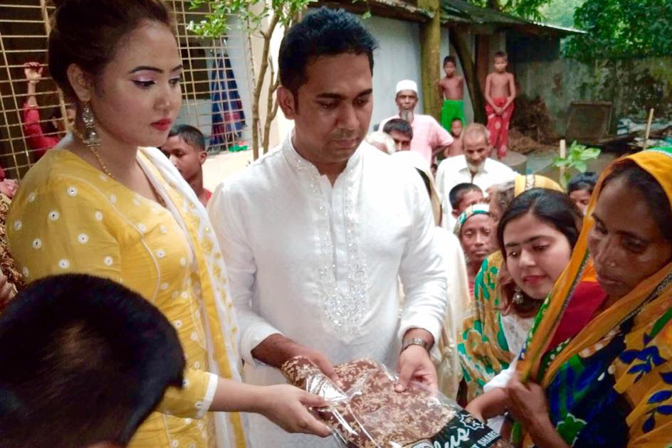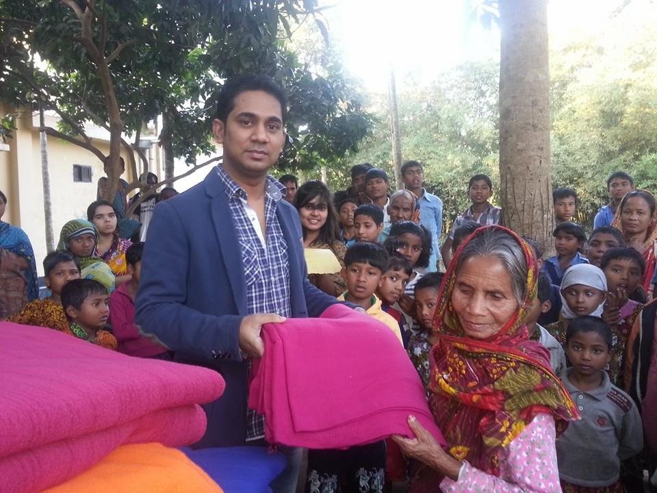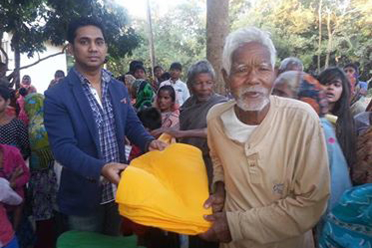 The Bangladesh Today Editor and Publisher, Jobaer Alam and his wife Marjaan Jenifa distributes cloths among poor village people.