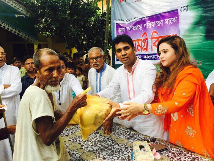 Chairman of The Bangladesh Today, Jobaer Alam distributes relief materials among flash flood affected families in mid of the last year.