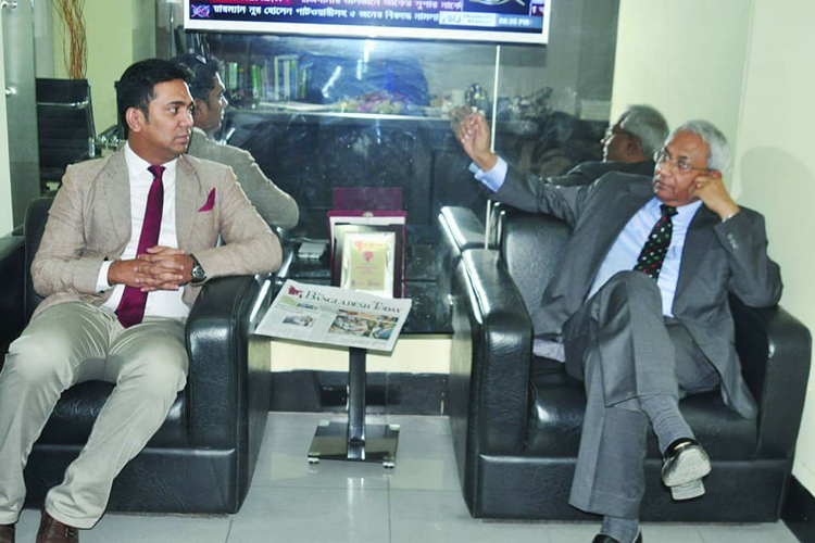 Chairman of The Bangladesh Today, Jobaer Alam talks with Barisal University vice-chancellor Dr. Imamul Haque at the Bagladesh Today office.