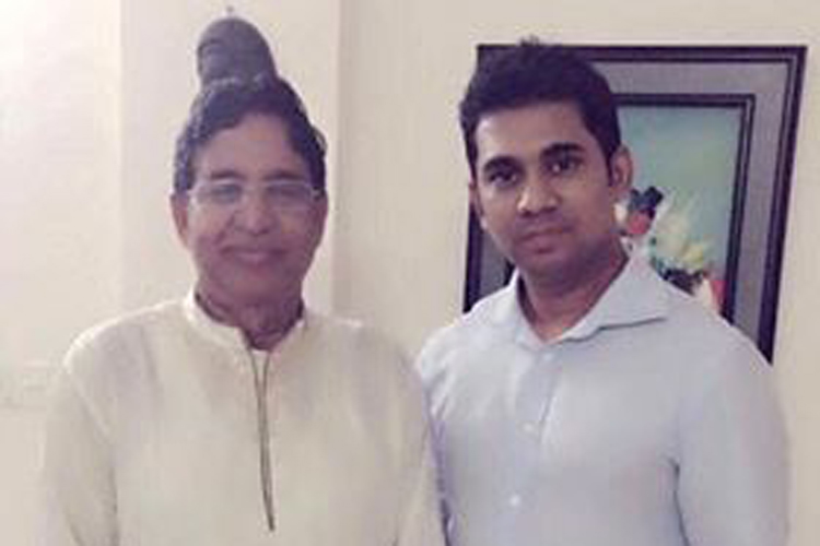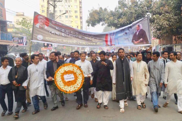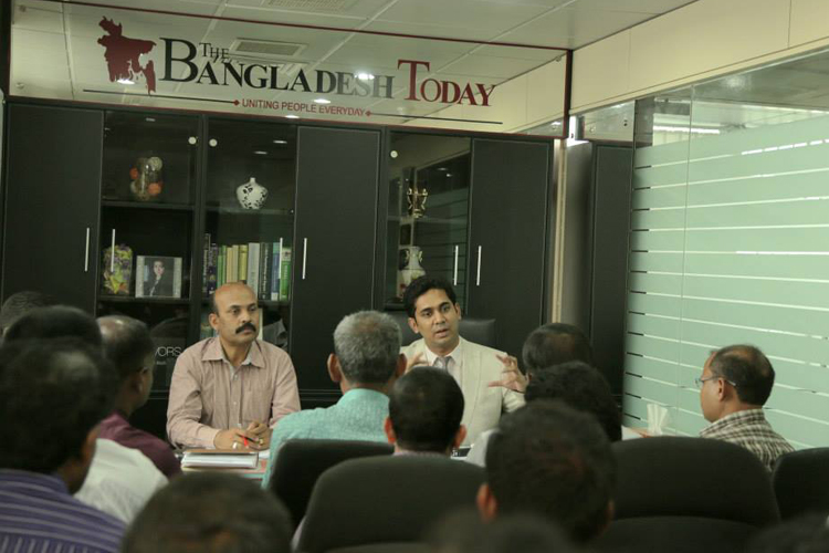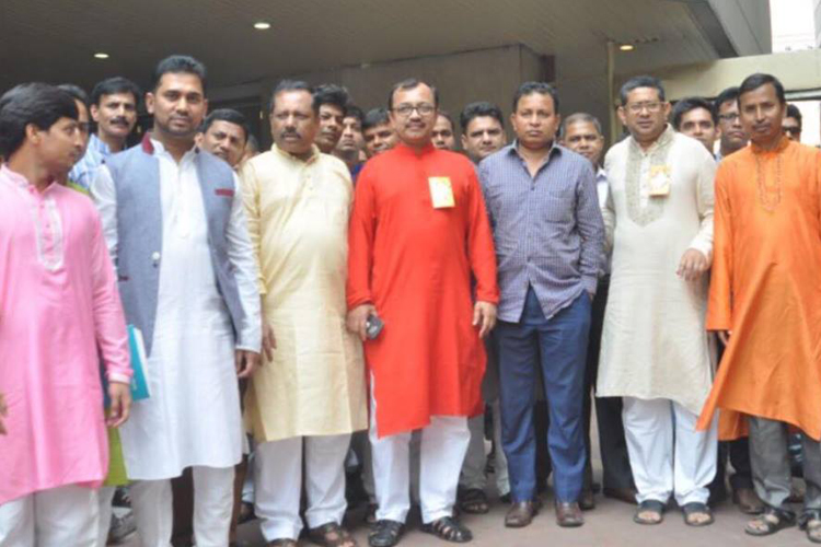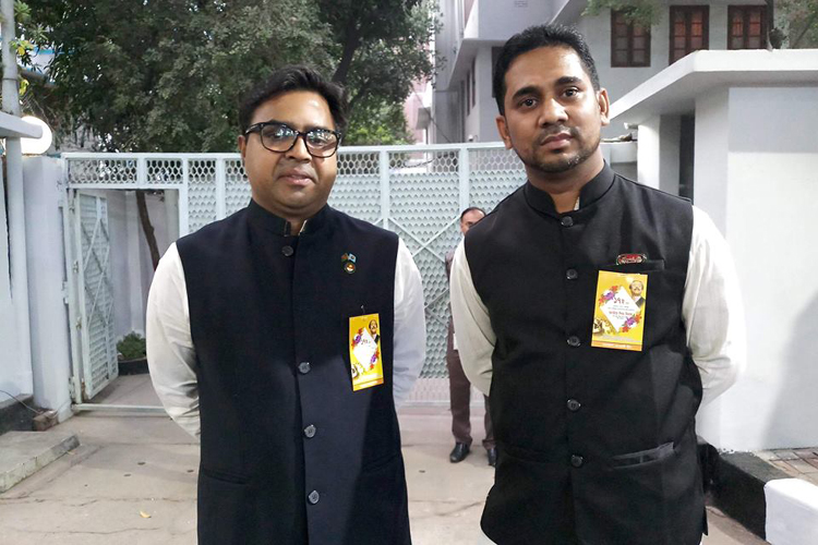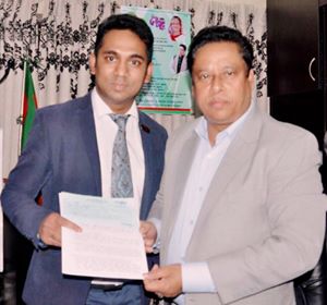 Chairman of The Bangladesh Today, Jobaer Alam with Awami League office secretary Dr. Abdus Sobhan Golap holding up nomination Form of Dhaka North Mayoral Election.