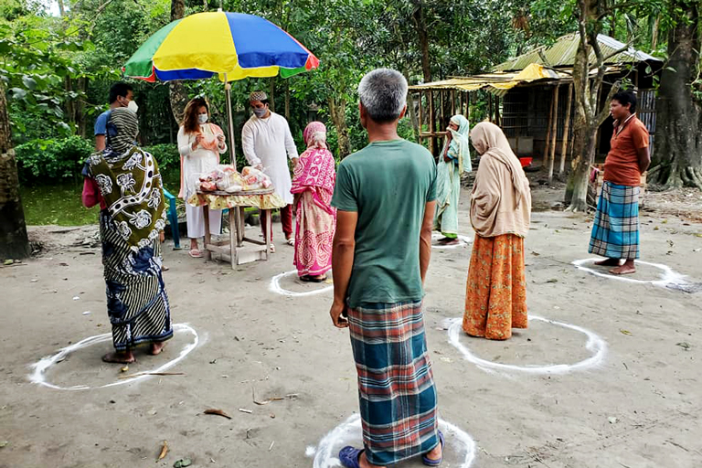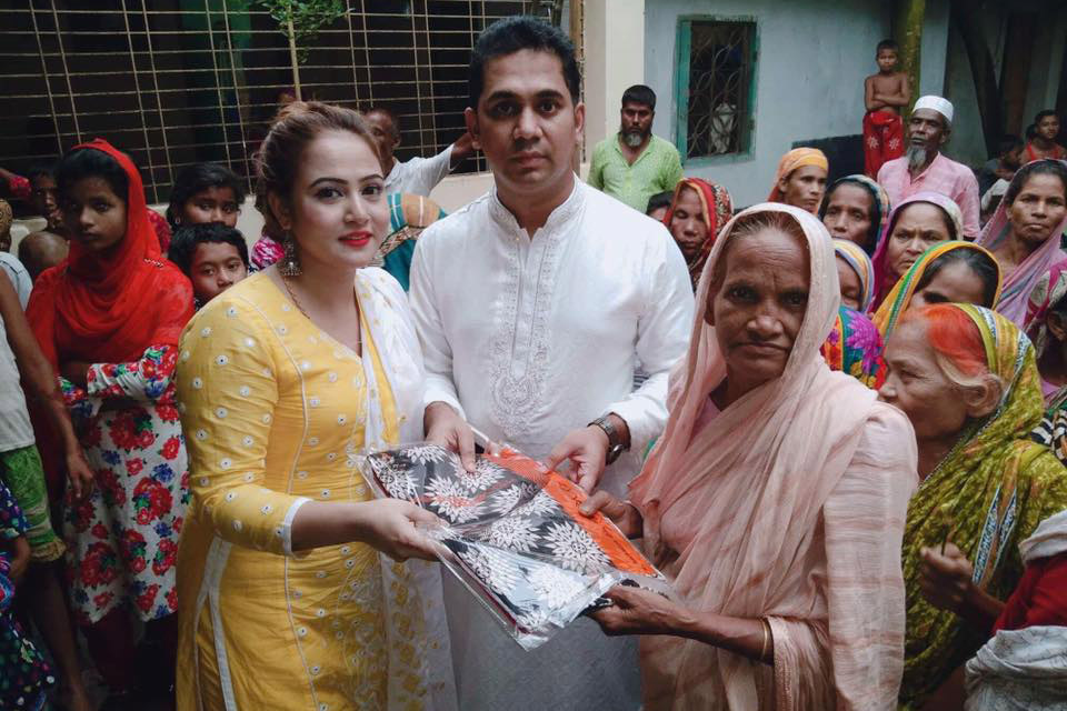 The Bangladesh Today Editor and Publisher, Jobaer Alam and his wife Marjaan Jenifa distributes cloths among poor village people.