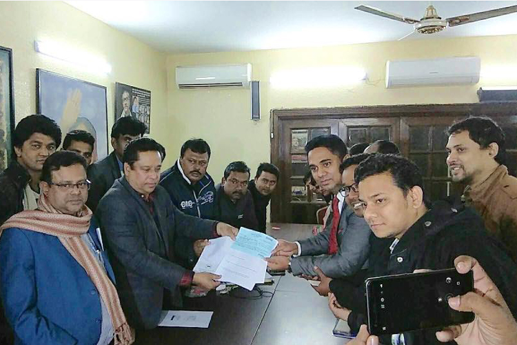 Chairman of The Bangladesh Today, Jobaer Alam with Awami League office secretary Dr. Abdus Sobhan Golap holding up nomination Form of Dhaka North Mayoral Election.